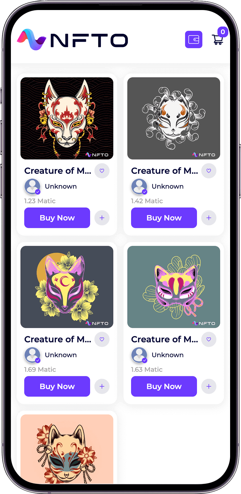 NFTO has been developed using the MERN stack and provides intuitive features like lazy minting at an affordable price. We guarantee much better results compared to other scripts on the market and let you build a futuristic NFT marketplace with the right options.